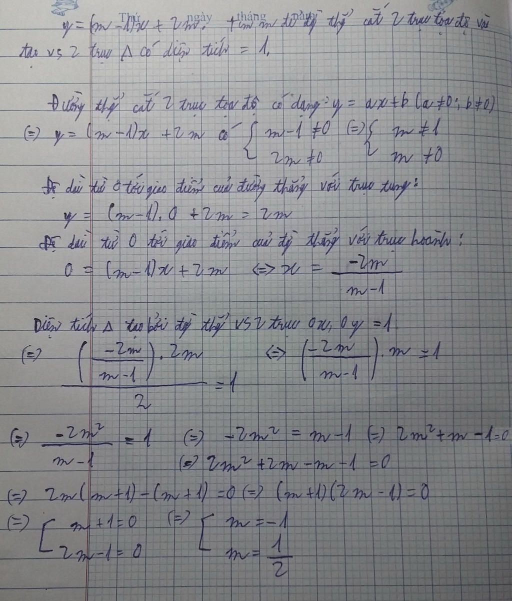 $\Leftrightarrow \left[\begin{array}{l}m= -1\\m = \dfrac12\end{array}\right.$