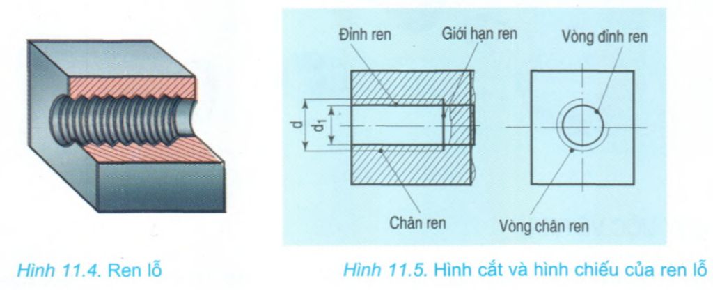Đường đỉnh ren được vẽ bằng nét liền đậm.