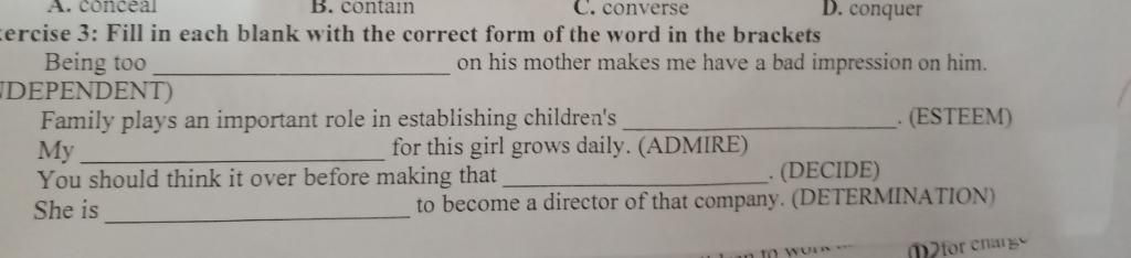 ercise 3: Fill in each blank with the correet form of the word in the brackets