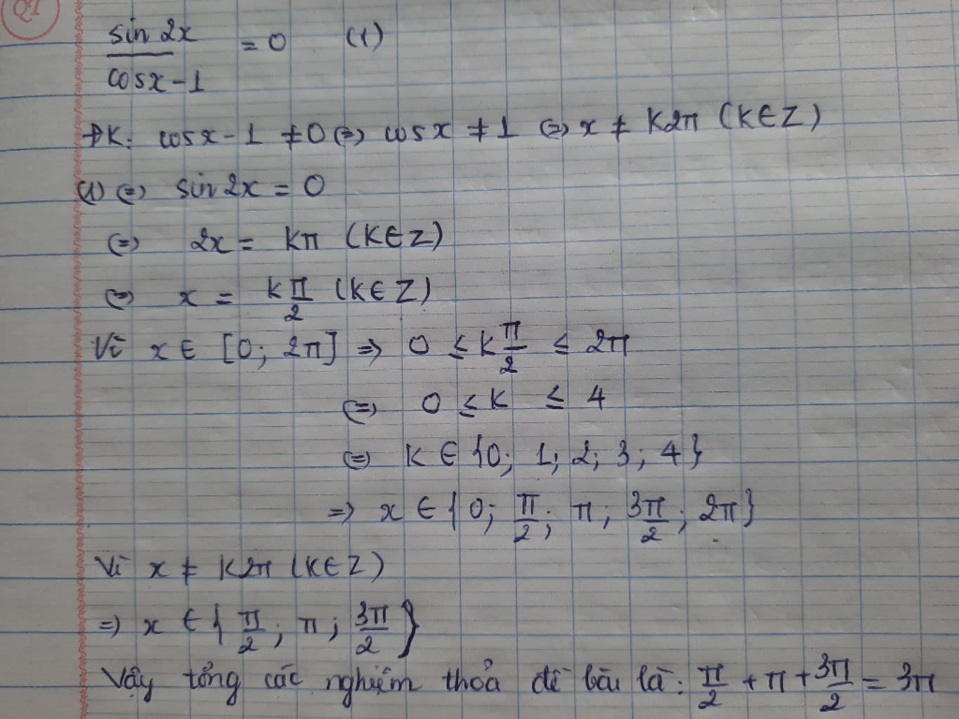 Mà `x \ne k2π => x \in { π/2 ;π; (3π)/2}`