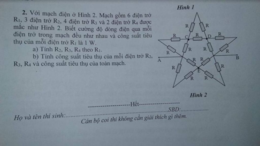 2. Với mạch điện ở Hình 2. Mạch gồm 6 diện trở