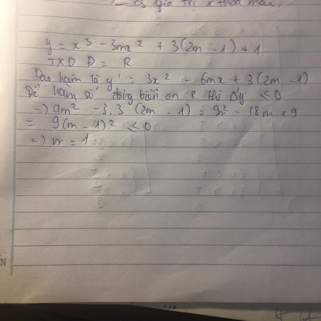 Để hàm số đồng biến trên R thì $Δ'_{y'}≤0$