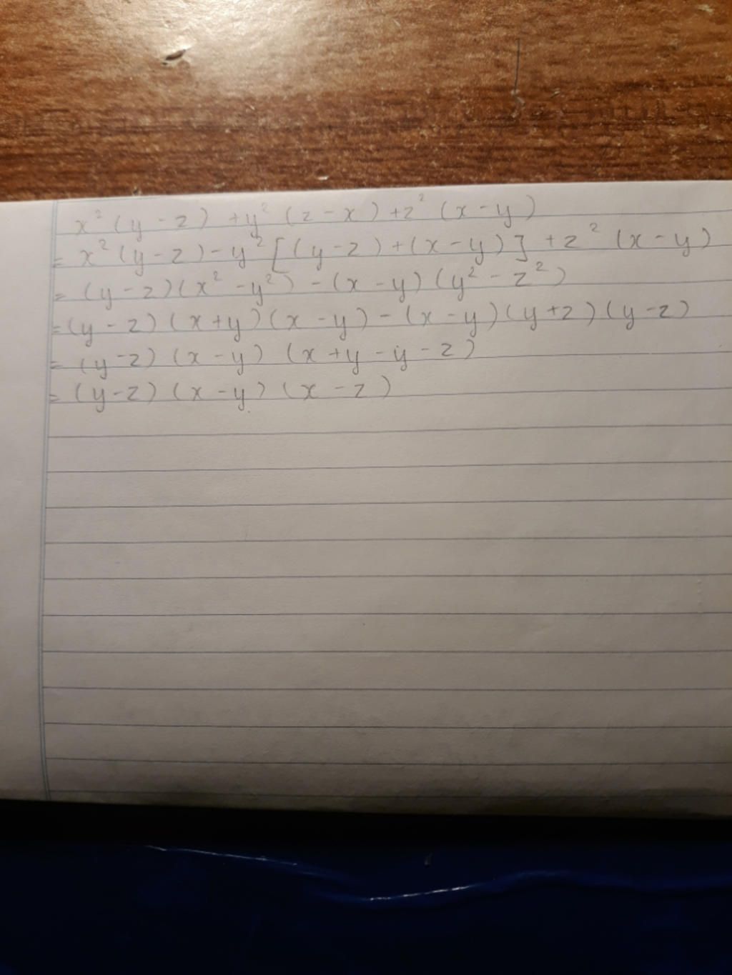 = (x²y - xy²) - (x²z - y²z) + z²(x - y)