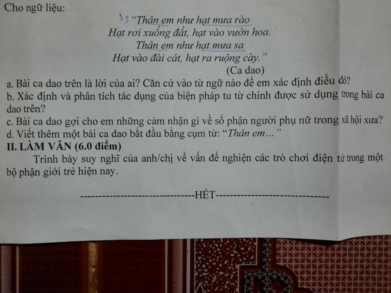 - Căn cứ vào từ " thân em " mà ta xác định được điều đó.