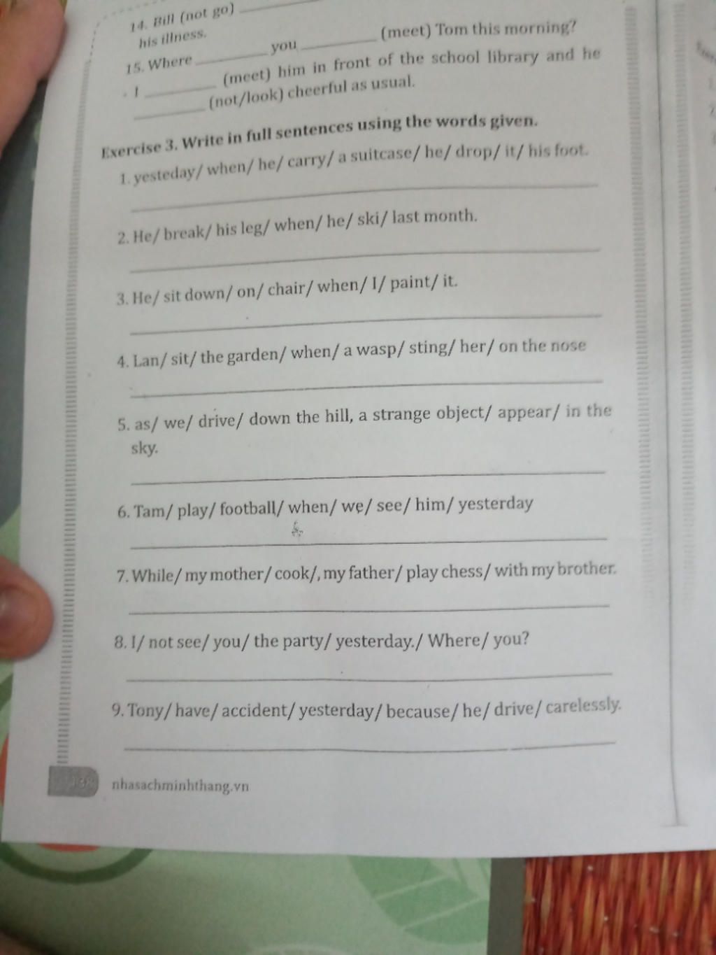 4. Lan was sitting in the garden when a wasp stung her on the nose.