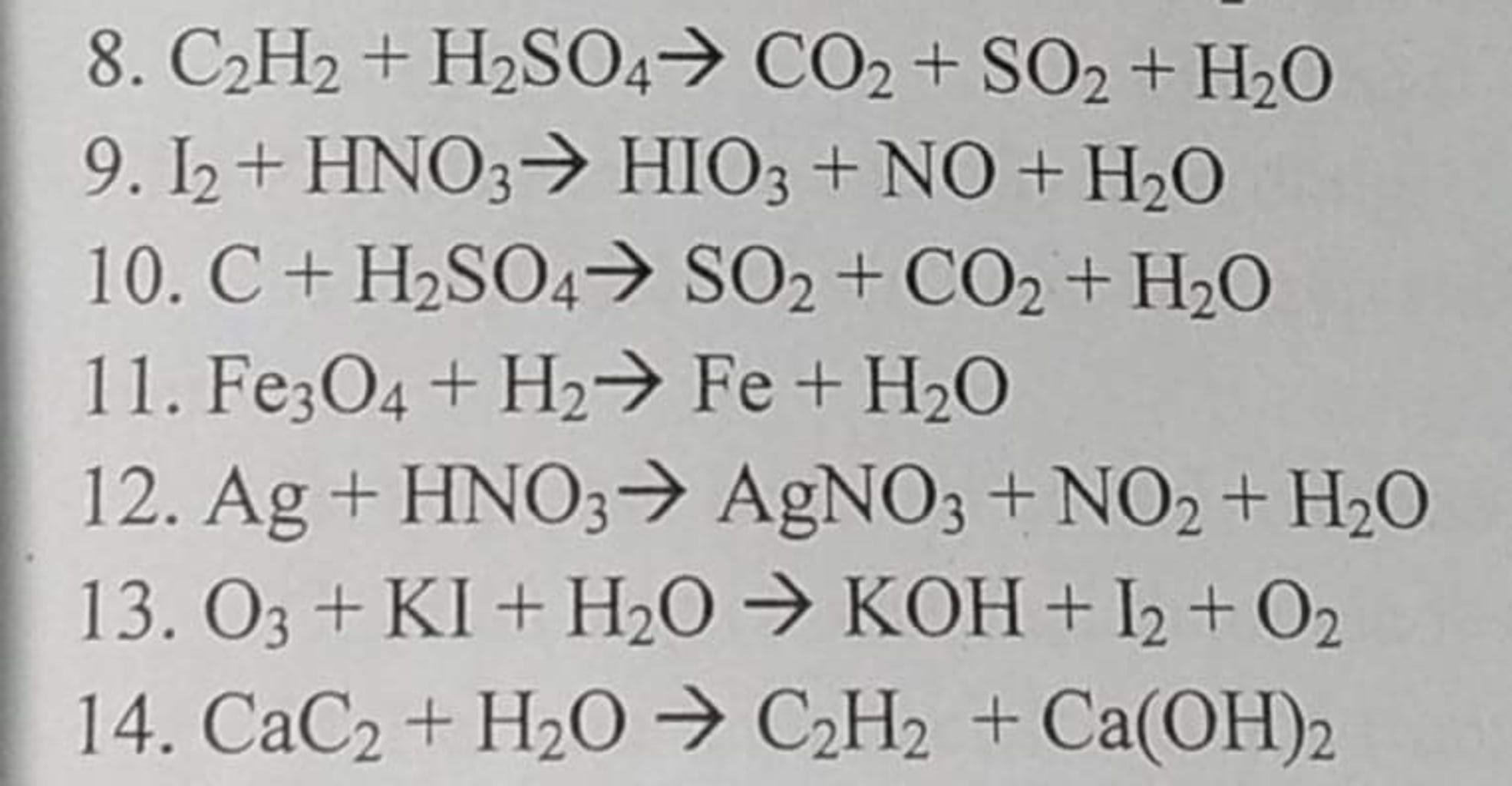 $⇒C_2H_2+5H_2SO_4→2CO_2↑+5SO_2↑+6H_2O$