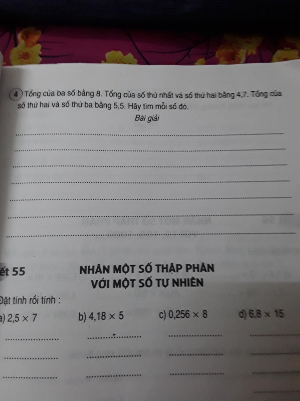 Đáp án: Số thứ nhất: `2,5` ; Số thứ hai: `2,2` ; Số thứ ba: `3,3`