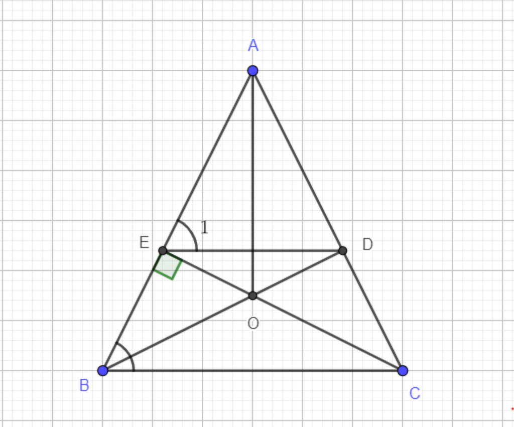 $\Delta AED$ cân đỉnh $A$ nên $\widehat{E_1}=\dfrac{180^o-\widehat A}{2}$ mà $\Delta ABC$ cũng cân đỉnh $A$ nên $\widehat{B}=\dfrac{180^o-\widehat A}{2}$