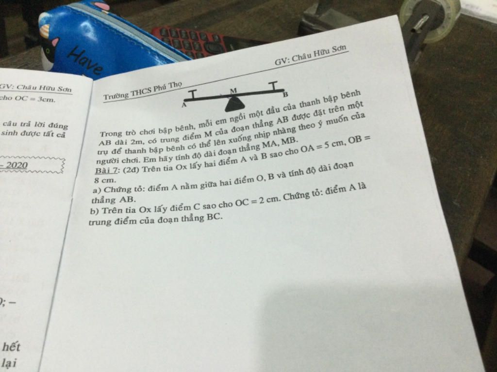 AB dài 2m, có trung điểm M của doạn thẳng AB được đặt trên một
