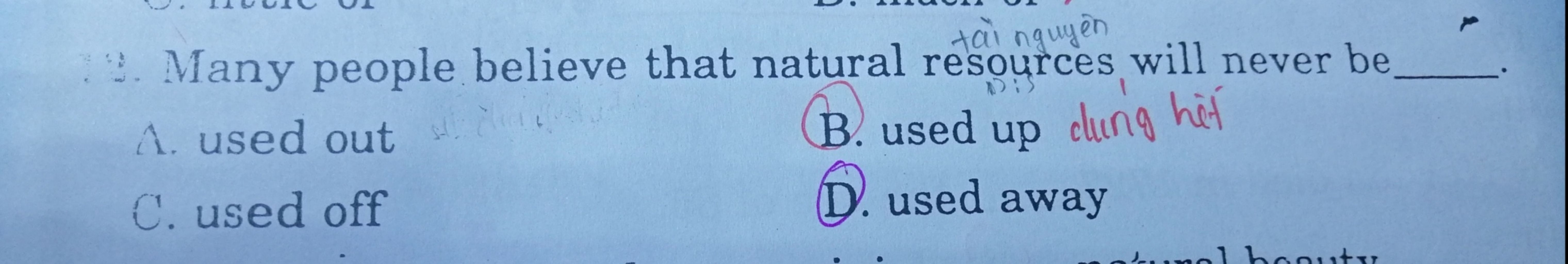 và ở câu này cũng là câu có (will never) cộng với ngữ cảnh phía trước nó nữa nên ở đây dùng ''used up'' bạn nhé