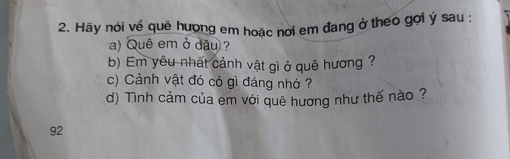 Quê em ở........................ nơi có dòng sông.....................,có dãy núi đá vôi trắng xóa những cánh cò chiều chiều.Em thích nhất cảnh dãy núi phấp phới những cánh cò.(có thể là lí do khác chẳng hạn như các bác nông dân gặt lúa,cuốc cày sớm trưa hay là đồng lúa chín vàng thơm ngạt ngào mùi hương thoang thoảng hoặc là những cánh diều bay bổng buổi chiều thu mát mẻ,....).Cảnh tượng ấy gợi cho em cảm giác yên bình và thanh thản hơn vì mỗi buổi chiều lại được ngắm nhìn dãy núi cao hiện trắng những cánh cò.Quê hương em tuyệt đẹp.Em yêu quê hương em.Em coi quê hương là người bạn thân thiết.Quê hương là nơi em sinh ra và lớn lên nên tình yêu em dành cho quê hương em là mãi mãi.Quê em thật tuyệt vời!