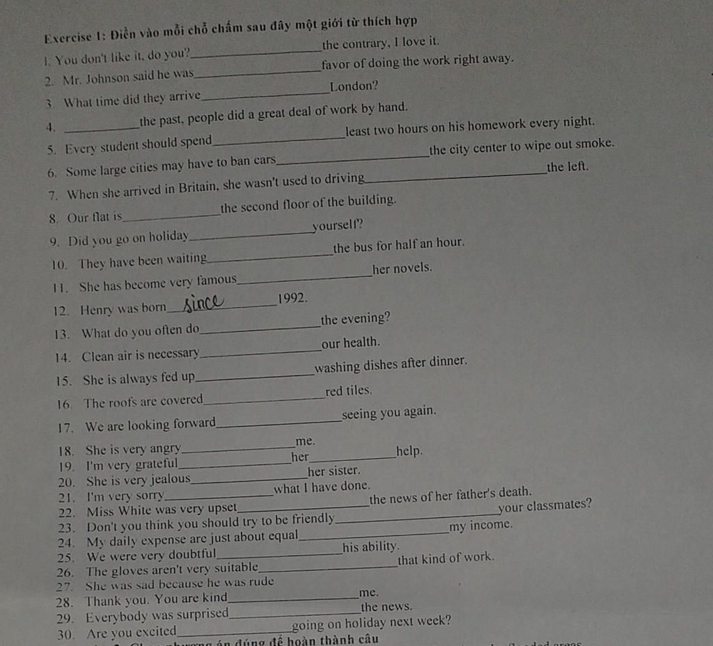 30, about (to be excited about: háo hức về cái gì)