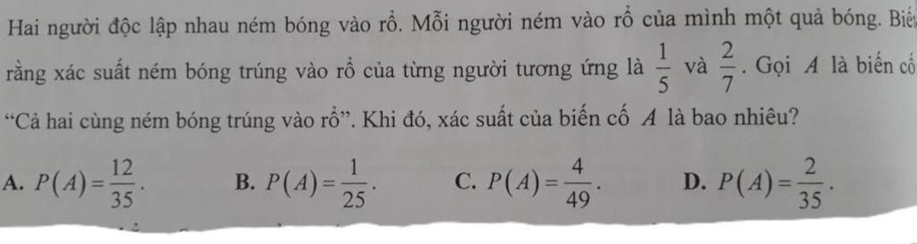 Do 2 người ném bóng độc lập với nhau nên xác suất để cả 2 người cùng ném trúng là: