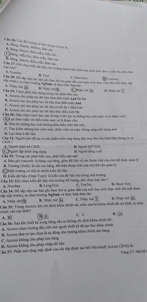 Câu 26: Các đôi tượng cơ bản trong Access là:
