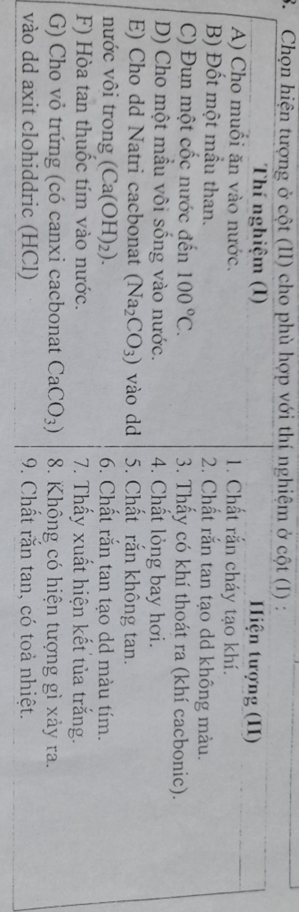 G-3: Cho vỏ trứng vào dung dịch axit clohidric thì vỏ trứng tan và có khí không màu thoát ra là \(CO_2\)