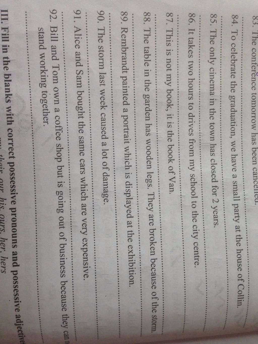 Đề bài là dùng sở hữu viết lại câu ai làm lại hộ em với ạ em cám ơn