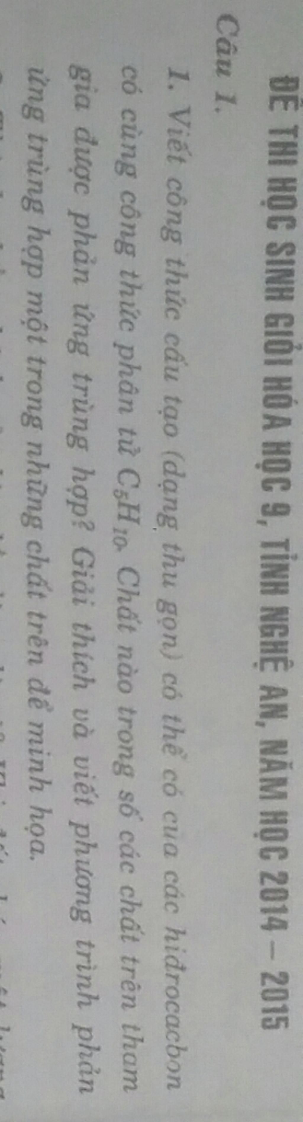 ĐE THI HỌC SINH GIỎI HÓA HỌC 9, TỈNH NGHỆ AN, NĂM HọC 2014 - 2015