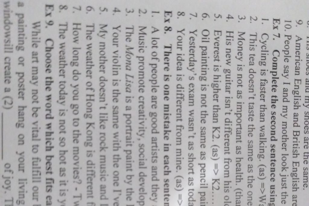 7.Today's exam is shorter than yesterday's exam