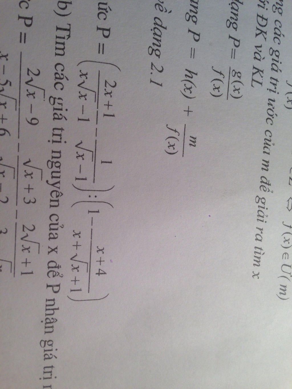`=(2x+1-(x+\sqrt[x]+1))/((\sqrt[x]-1)(x+\sqrt[x]+1)):((x+\sqrt[x]+1)-(x+4))/(x+\sqrt[x]+1)` `=(2x+1-x-\sqrt[x]-1)/((\sqrt[x]-1)(x+\sqrt[x]+1)).(x+\sqrt[x]+1)/(x+\sqrt[x]+1-x-4)` `=(x-\sqrt[x])/((\sqrt[x]-1)(x+\sqrt[x]+1)).(x+\sqrt[x]+1)/(\sqrt[x]-3)` `=(\sqrt[x](\sqrt[x]-1))/((\sqrt[x]-1)(x+\sqrt[x]+1)).(x+\sqrt[x]+1)/(\sqrt[x]-3)` `=\sqrt[x]/(\sqrt[x]-3`