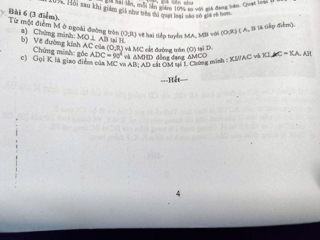 Từ một điểm M ở ngoài dưong tròn (0;R) ve hai tiếp tuyến MA, MB với (0;R) (A, B la tiếp điểm).