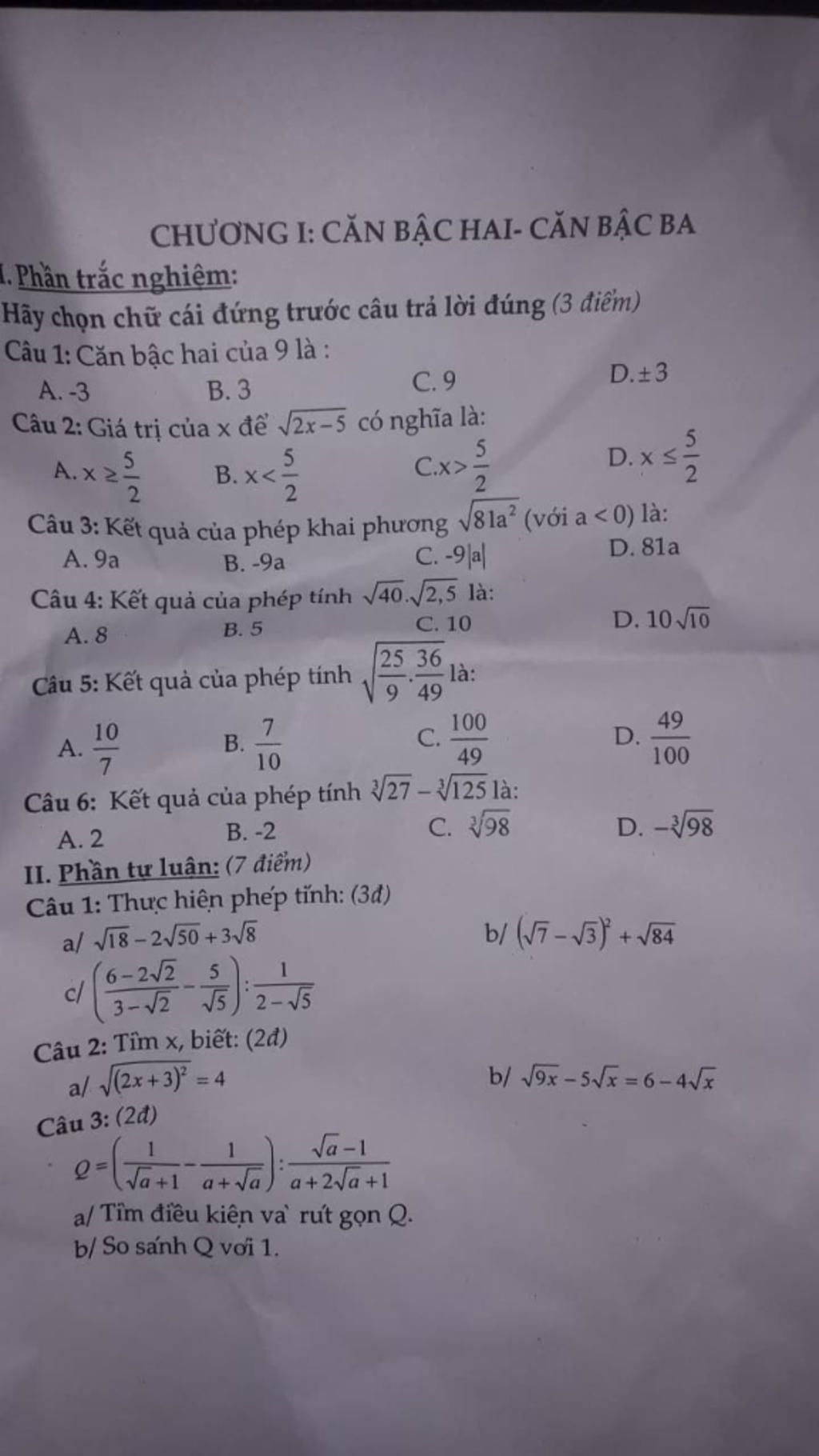 Câu 2: Giá trị của x để /2x-5 có nghĩa là: