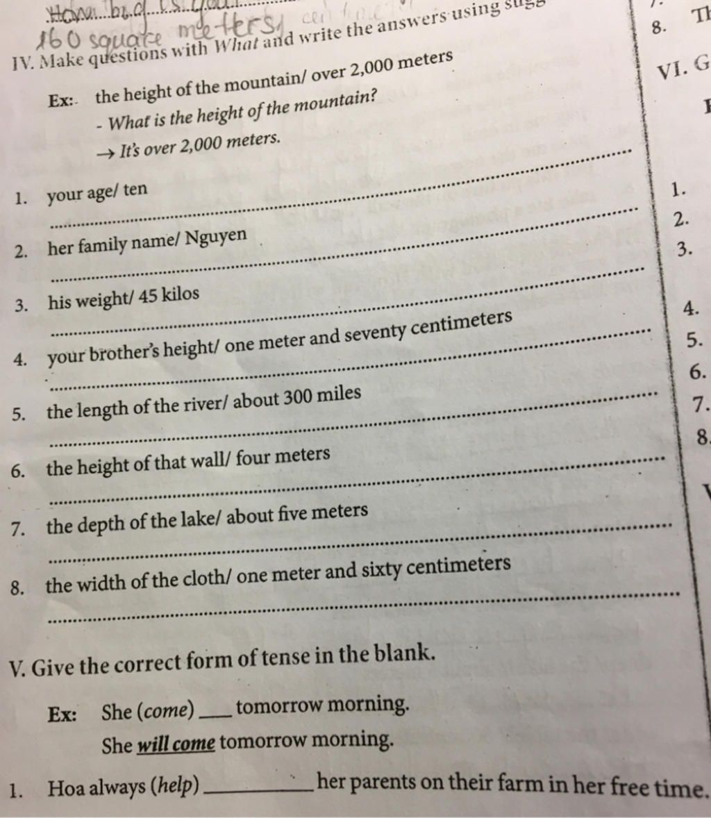 IV. Make questions with What and write the answers using