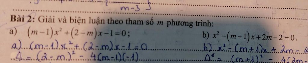 \to 4 - 4m + {m^2} - 4\left( {m - 1} \right).\left( { - 1} \right) = 0\\