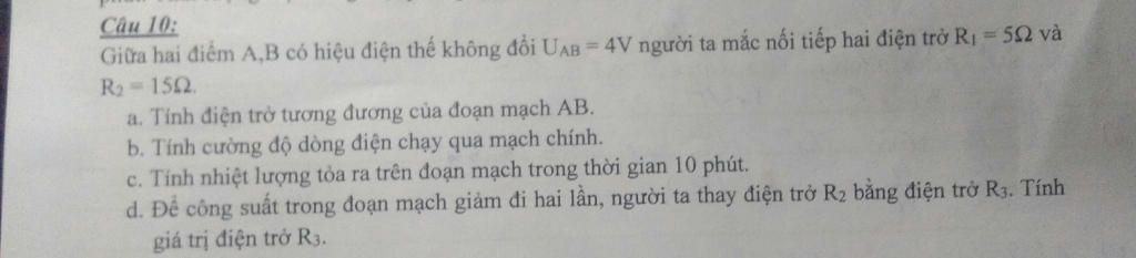 c. Nhiệt lượng tỏa ra trong 10 phút là: