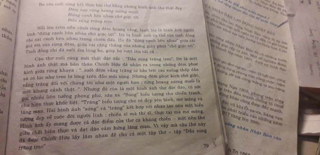 Ba câu thơ là bức tranh đẹp về tình đồng chí, đồng đội của người lính, là biểu tượng đẹp về cuộc đời người chiến sĩ. Trong bức tranh trên, nổi bật là ba hình ảnh gắn kết với nhau: Người lính, khẩu súng, vầng trăng giữa cảnh rừng hoang sương muối phục kích giặc. Sức mạnh của tình đồng đội đã giúp họ vượt lên tất cả những khắc nghiệt của thời tiết và mọi gian khổ, thiếu thốn. Tình đồng chí đã sưởi ấm lòng họ. Hình ảnh Đầu súng trăng treo là hình ảnh đẹp nhất vì nó vừa là hình ảnh thực vừa là hình ảnh tượng trưng.