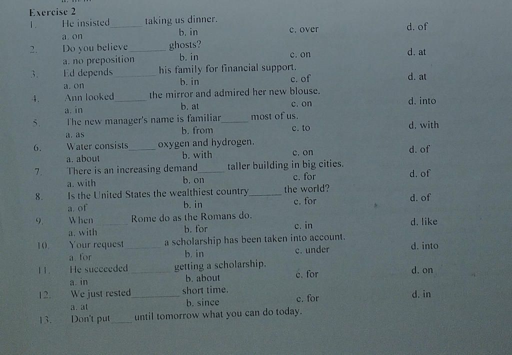 3, a- on (depend on sth: phụ thuộc vào cái gì)