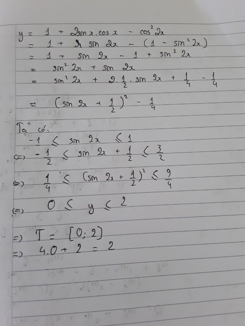 Do sin2x ≤ 1 ⇒ y ≤ 2 ⇒ b = 2