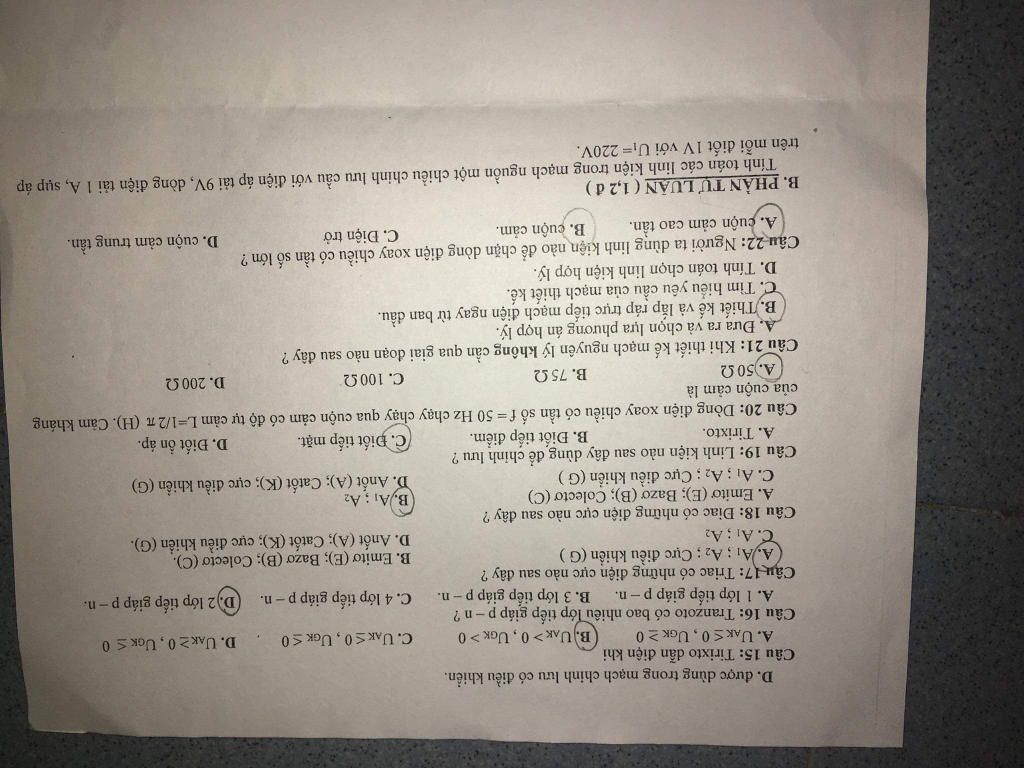 Câu 16: Tranzoto có bao nhiêu ớp tiếp giáp p- n ?