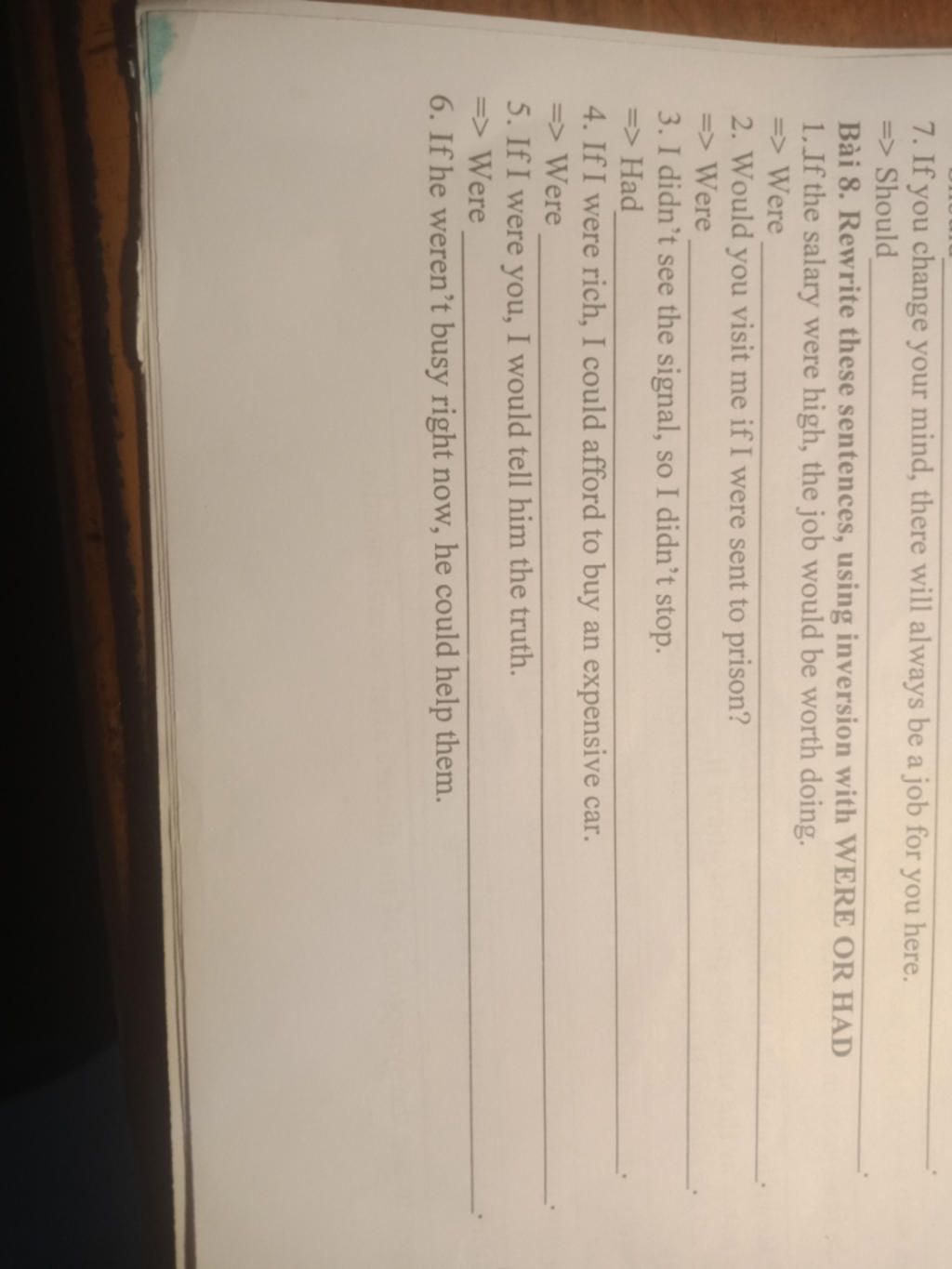 1.Were the salary high , the job would be worth doing