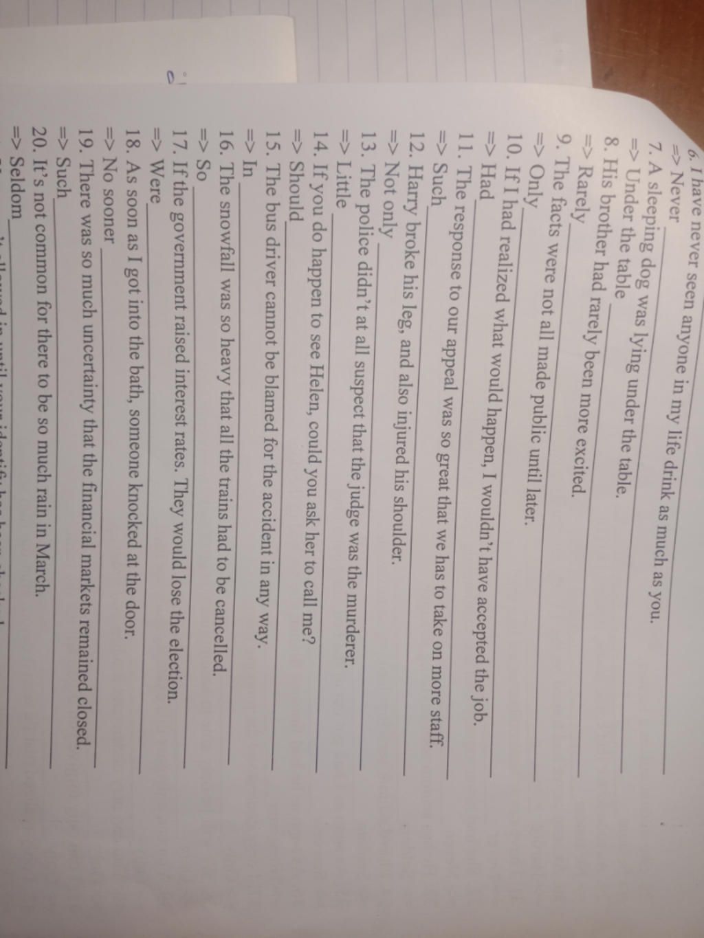 6. Never in my life have I seen anyone drink as much as you.