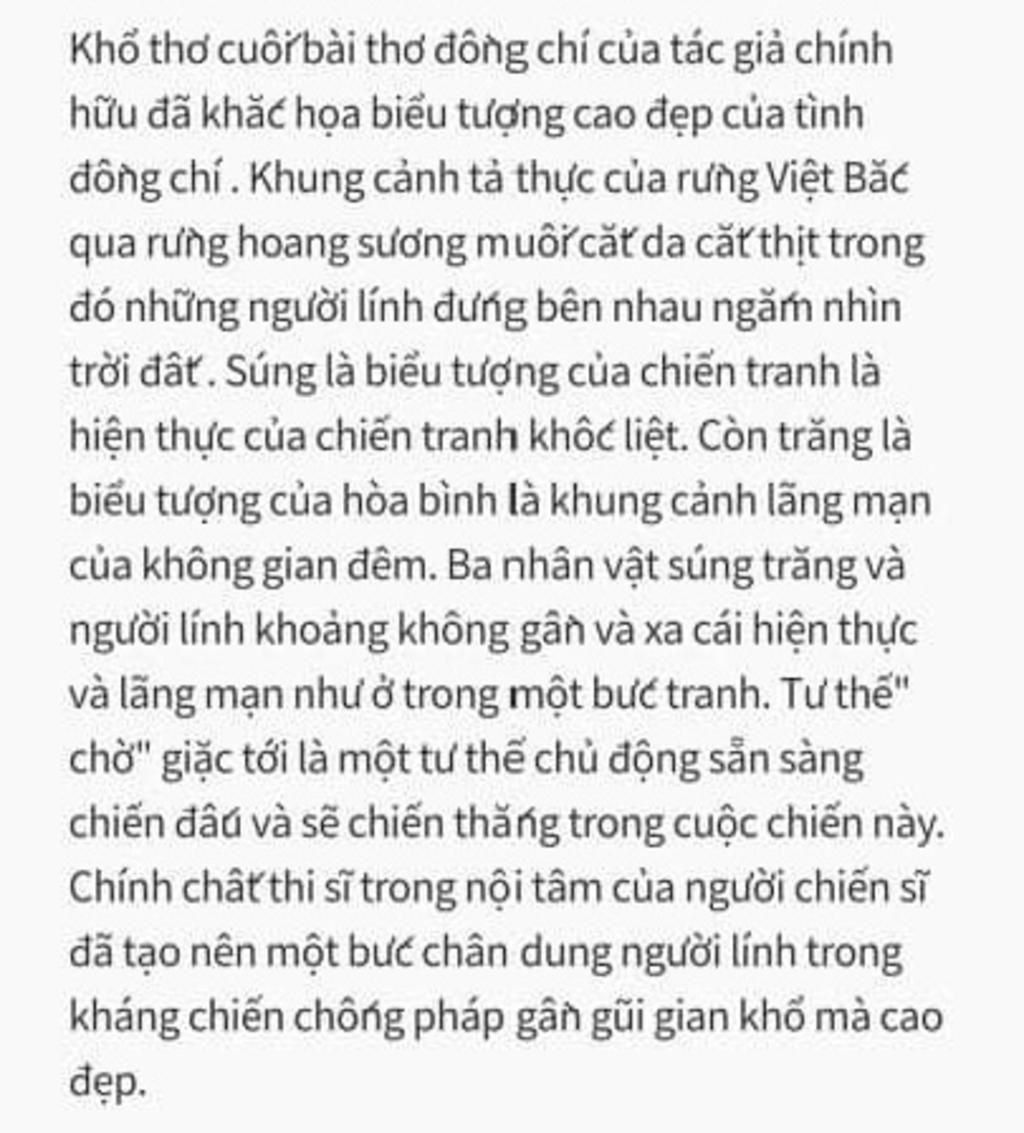 Còn nếu đây là cảnh thật của 2 người, thì rõ ràng là có 1 đồng chí trai và một đồng chí gái đang vừa canh gác vừa yêu nhau trong rừng vắng đêm khuya. Thật là truyền cảm.
