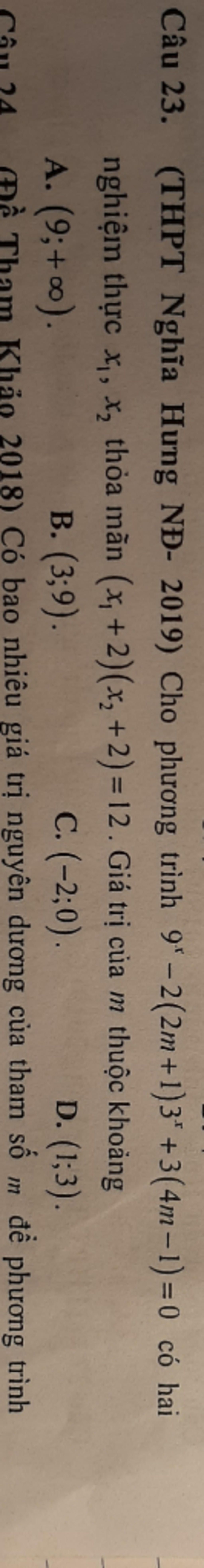 `(x_1+2)(x_2+2)=12<=>x_1=2<=>log_3(4m-1)=2<=>m=5/2` (thỏa điều kiện)