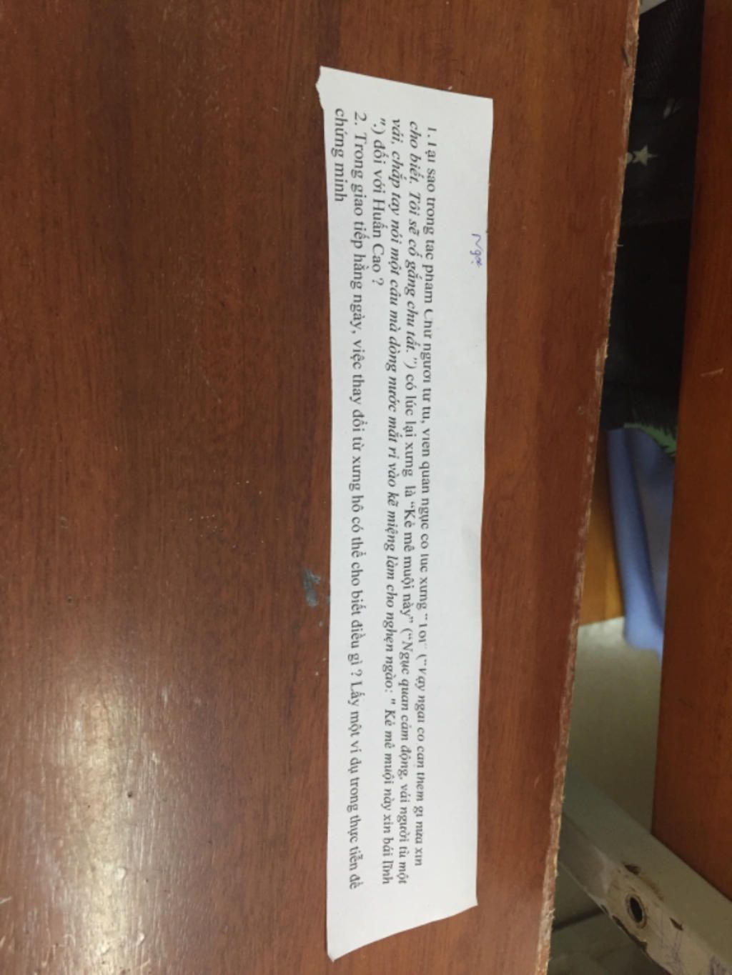 1.lại sao trong tác pham Chứ người tư tu, vien quan ngục co luc xưng "lor ("Vạy ngai có can them gi nữa xın