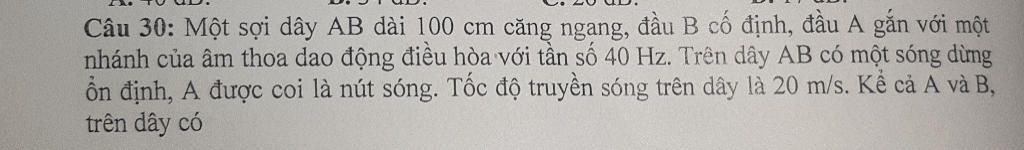 Giữa A và B có đúng 4 bó sóng do đó trên dây có 5 nút và 4 bụng sóng.