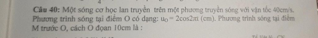 = 2\cos \left( {2\pi t + \frac{{2\pi .10}}{{40}}} \right) = 2\cos \left( {2\pi t + \frac{\pi }{2}} \right)cm