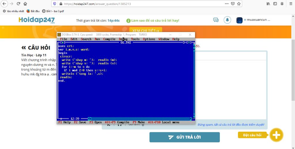 write ('nhap m: '); readln (m);