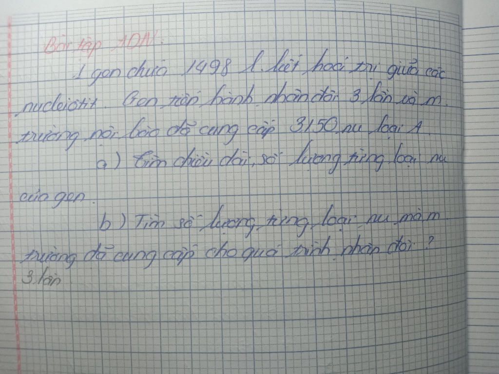 b, Số lượng nucleotit từng loại môi trường cung cấp: