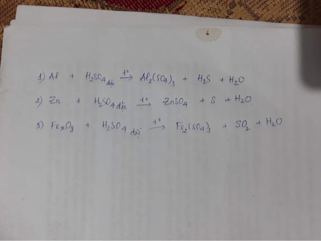 8Al + 15{H_2}S{O_4} \xrightarrow{t^0} 4A{l_2}{(S{O_4})_3} + 3{H_2}S + 12{H_2}O\\