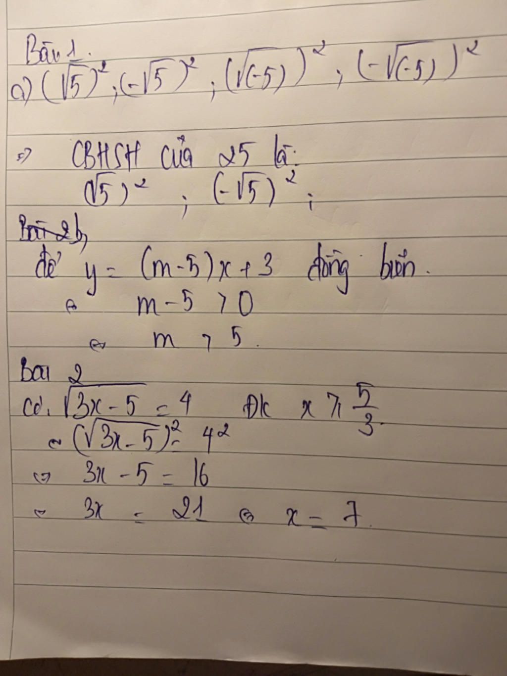 vậy để hàm số y=(m-5)x+3 là hàm số đồng biến thì m>5