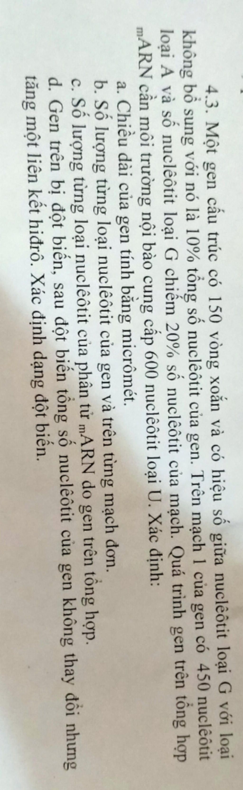 d, Dạng đột biến không làm thay đổi số nucleotit => Đột biến thay thế các cặp Nu