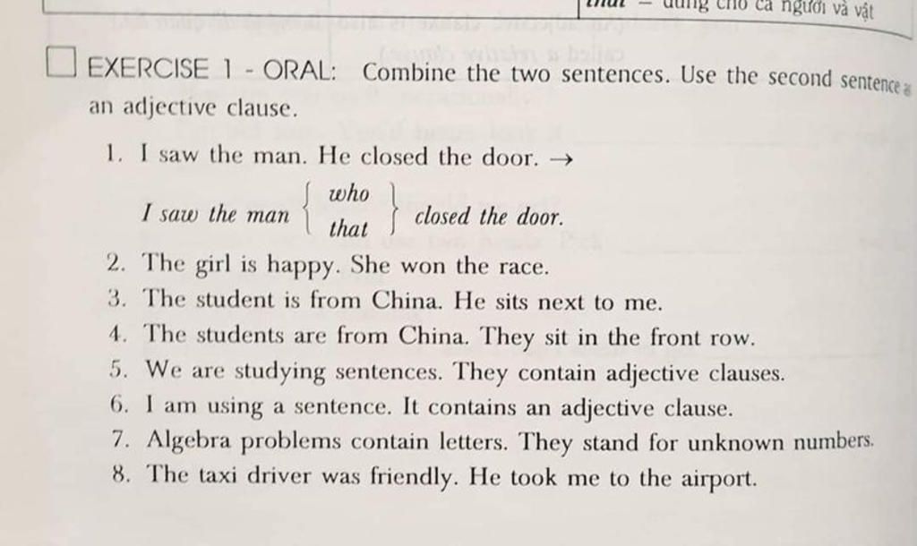D EXERCISE 1 - ORAL: Combine the two sentences. Use the second sentencea
