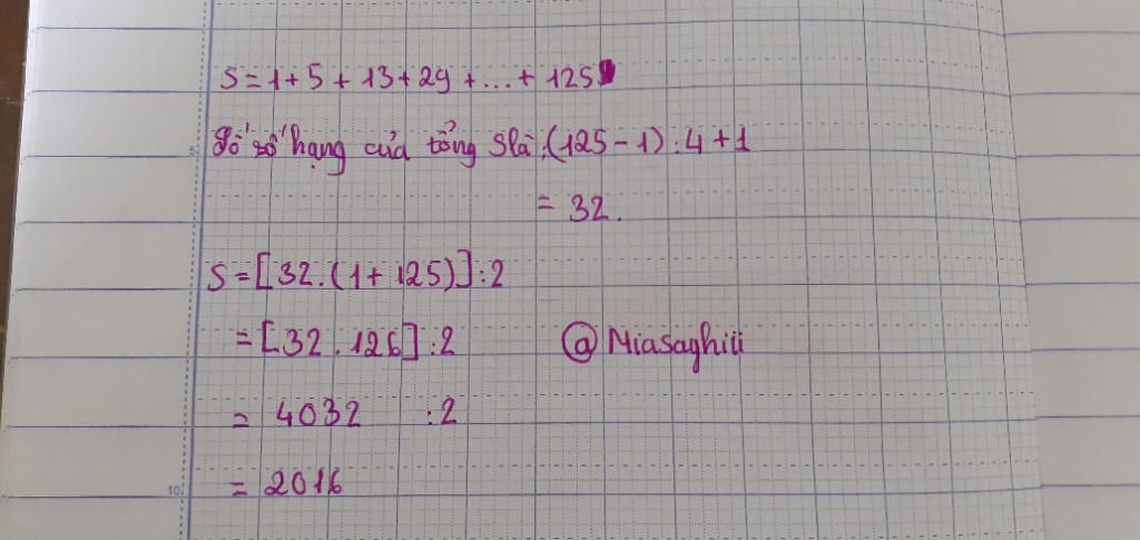 `S = 5 - 1 + 29 - 13 +... 125 `