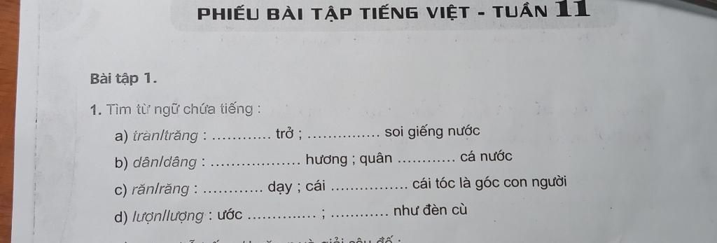 1. Tìm từ ngữ chứ tiếng :