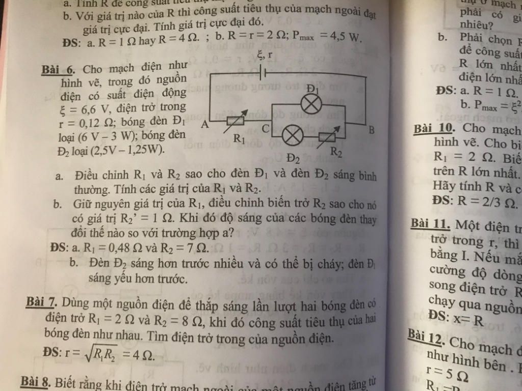ĐS: a. R = 1 Q hay R = 4 2.; b. R =r= 2 2; Pmax