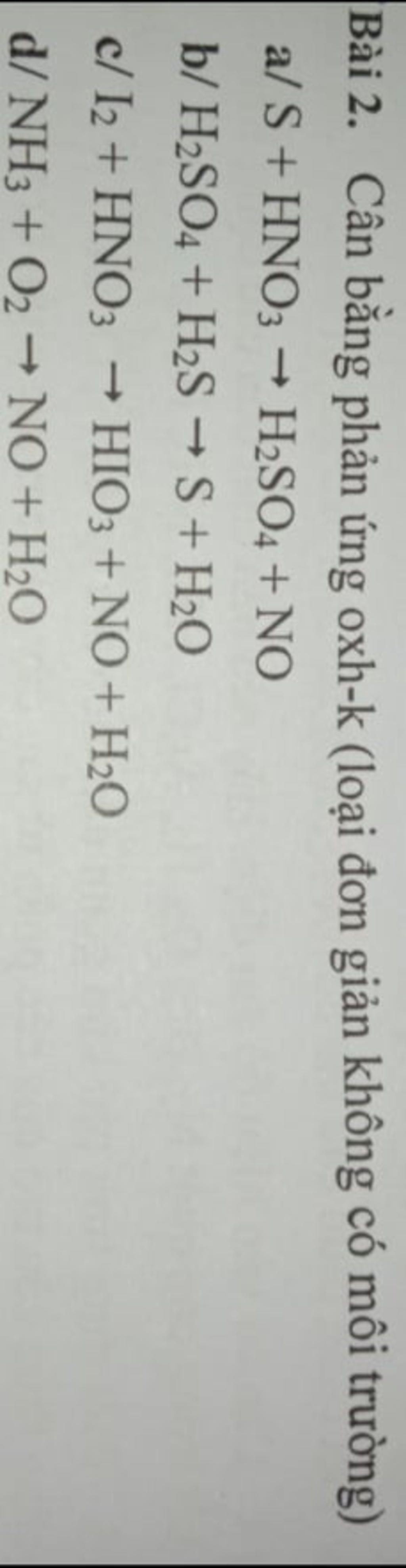 $a) S + 2HNO_3 \to H_2SO_4 + 2NO↑$