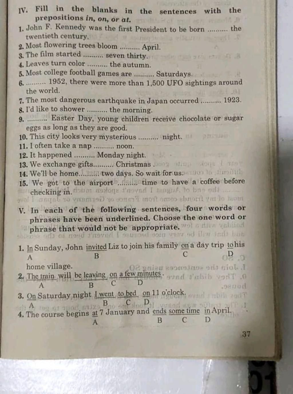 IV. Fill in the blanks in the sentences with